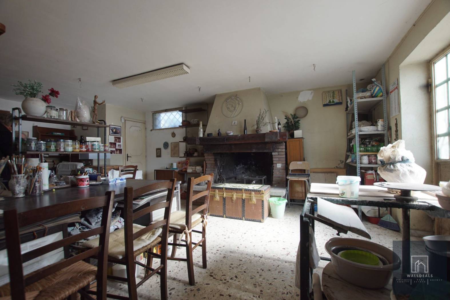 Il piano seminterrato comprende spazi versatili e funzionali, tra cui una sala hobby o laboratorio dotata di camino in mattoni, un bagno, una lavanderia, un locale deposito e un magazzino. Gli ambienti risultano adatti sia all'uso quotidiano sia come spazi di lavoro o rimessaggio.
