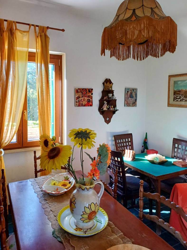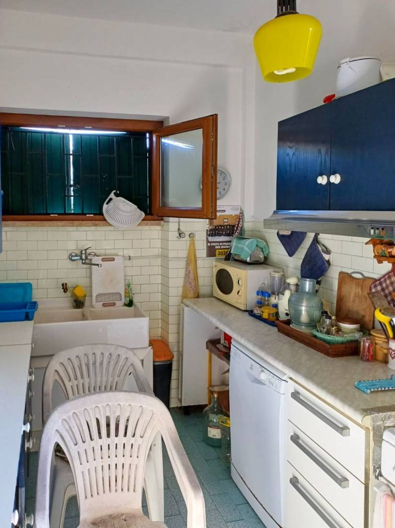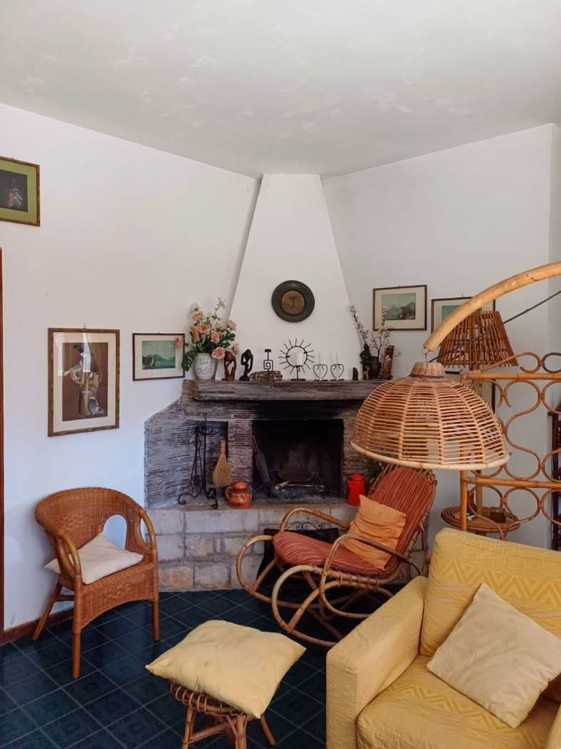 La villa si sviluppa su due livelli per una superficie commerciale complessiva di circa 150 m². Gli ambienti sono distribuiti in modo armonioso e funzionale, con cinque camere da letto e due bagni, un ampio e luminoso soggiorno con camino in pietra e una cucina abitabile con accesso diretto all'esterno.